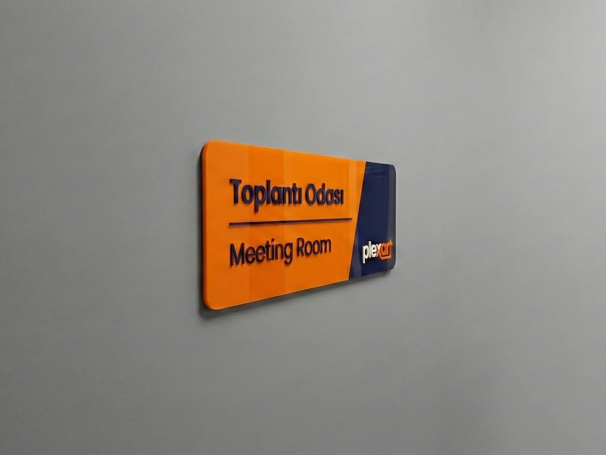 Plexart Pure 02 serisi; özellikle toplantı odası levhaları, tasarım stüdyosu girişleri ve ofis kapı isimlikleri için profesyonel bir çözüm sunar. Kabartma yapısı, ışık oyunlarıyla birleşerek tabelanın her açıdan fark edilmesini sağlar.