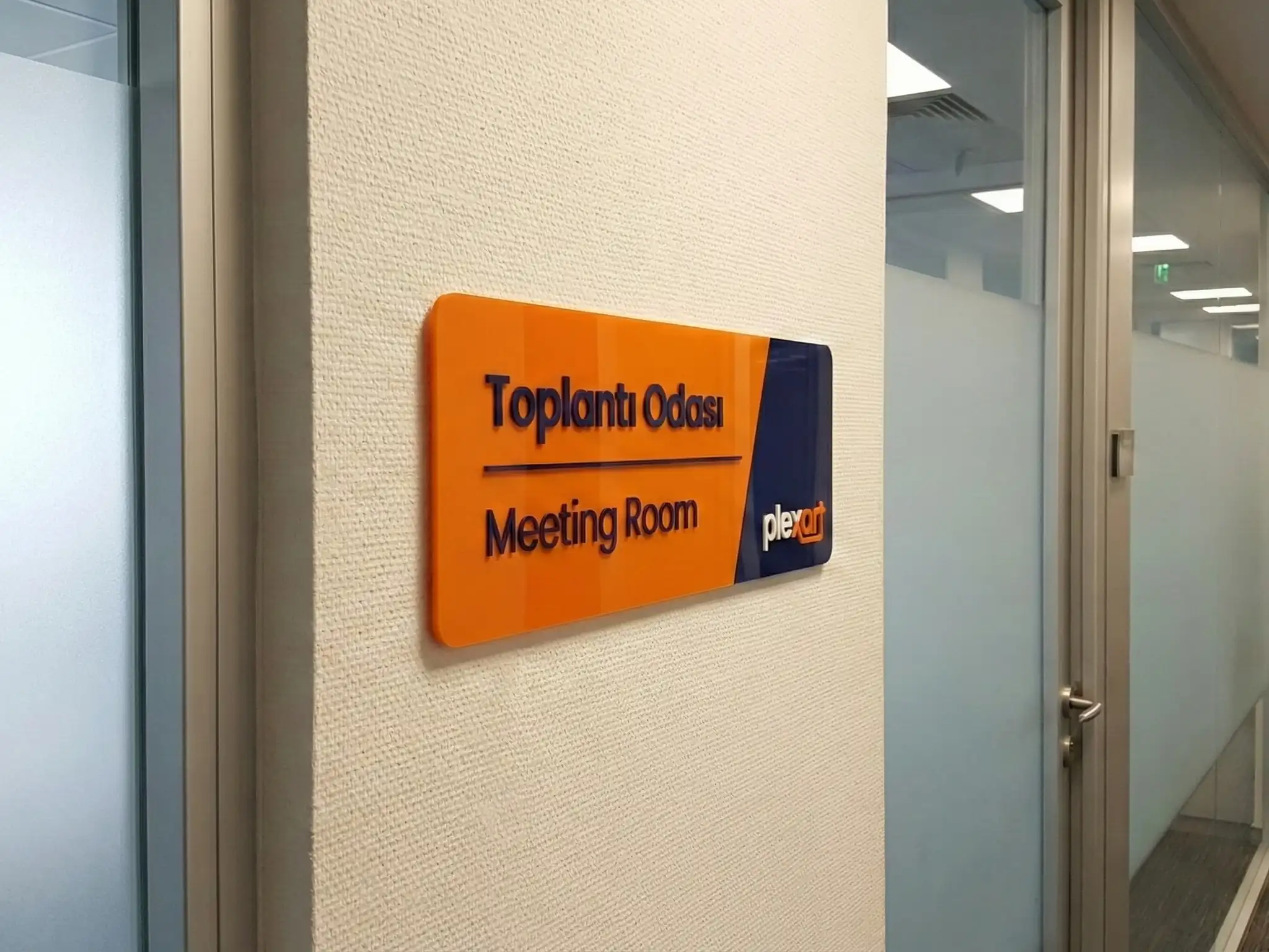 Mekanınıza en uygun pleksi kapı isimliği ölçülerini belirliyor, kurumsal kimliğinize özel planlama yapıyoruz.